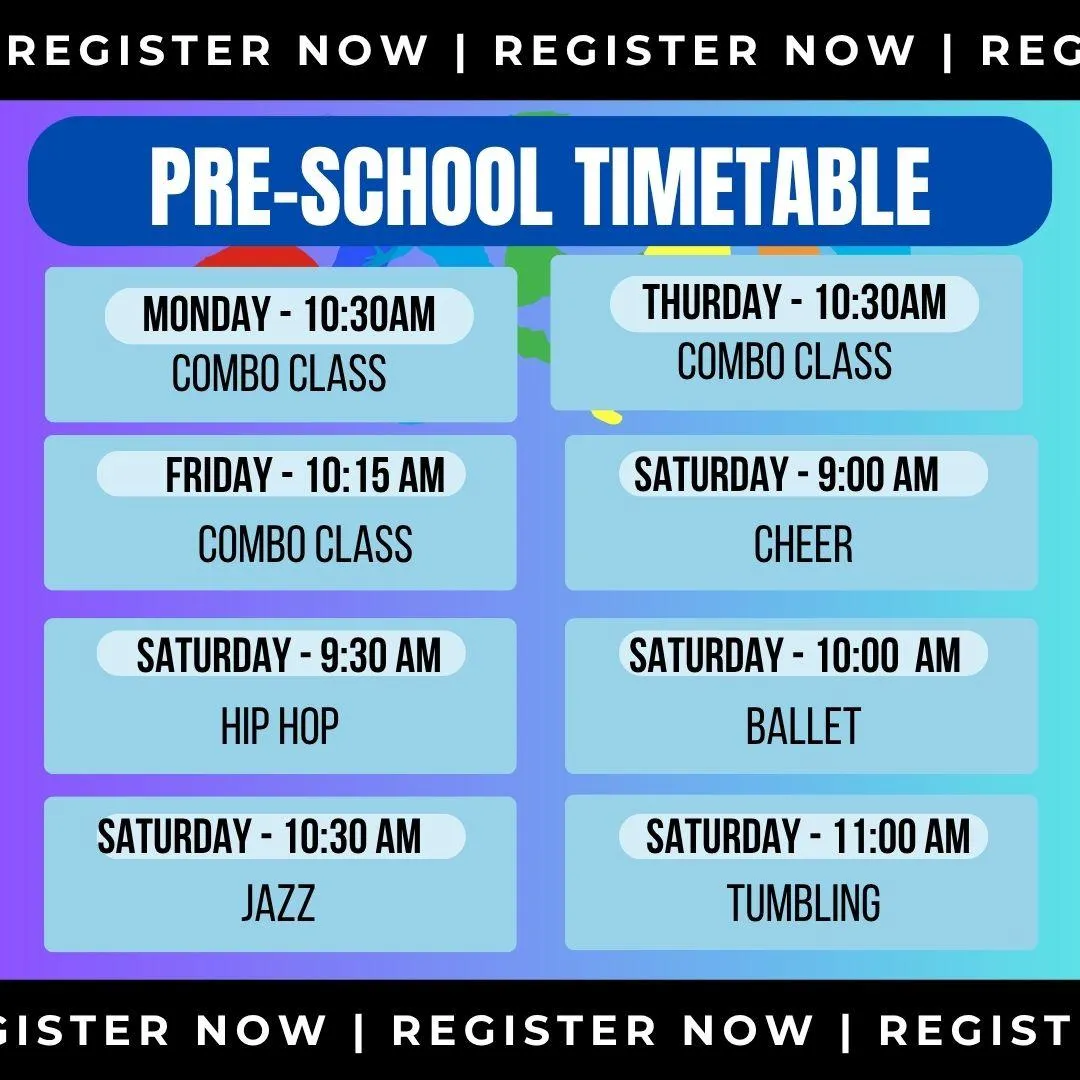 Take a look at the timetable below for your child's age group and book your child's spot! Choose as many classes as you like!